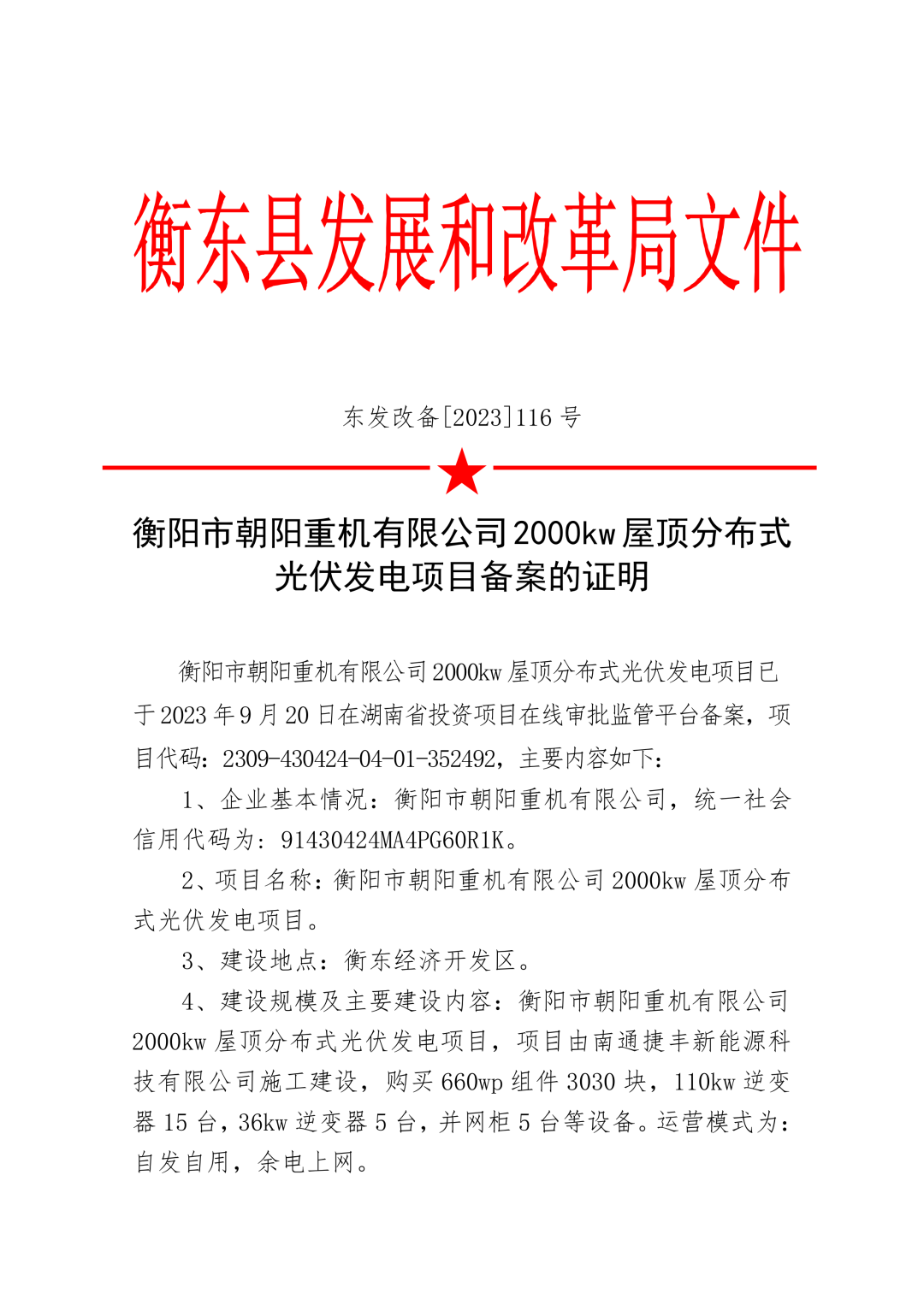 朝陽集團是一家具有社會責任感的企業,積極響應國家綠色雙碳發展的號召,一直在綠色產品和綠色能源上不斷探索和創新,致力于推動環保產業的發展。公司從源頭的設計開發上就著重綠色環保、節能減排。2023年8月集團的電機產品就獲得了“國家綠色設計產品”和“湖南省綠色設計產品”榮譽。公司這次投入巨資建設光伏項目,又在節能、綠色能源上走在了區域前面。