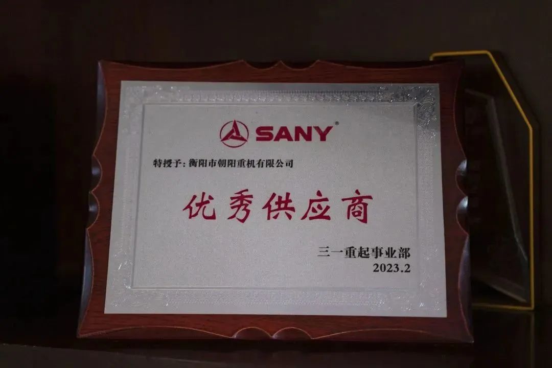 2023年2月,朝陽榮獲三一重起事業部頒發的“優秀供應商”獎牌。這不僅是對朝陽技術研發能力的認可,更是對朝陽作為合作伙伴的絕對信任。朝陽將秉承“嚴格工藝操作,確保產品質量”的原則,始終保持技術生產水平,為三一供應優質的高密度配重塊。