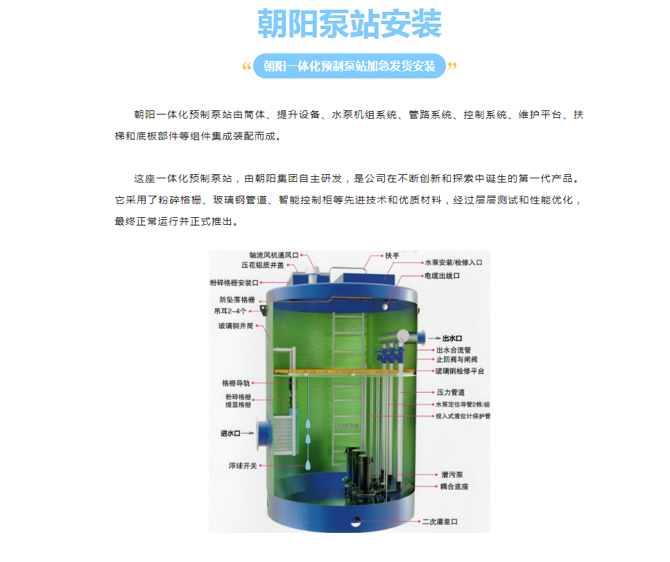 朝陽集團(tuán)應(yīng)工業(yè)園客戶的具體需求,按時按需完成并發(fā)貨。定制的一體化預(yù)制泵站,在設(shè)計(jì)上充分考慮了客戶的實(shí)際使用情況,經(jīng)過嚴(yán)格測試和檢驗(yàn),確保其性能穩(wěn)定可靠,壽命長久。